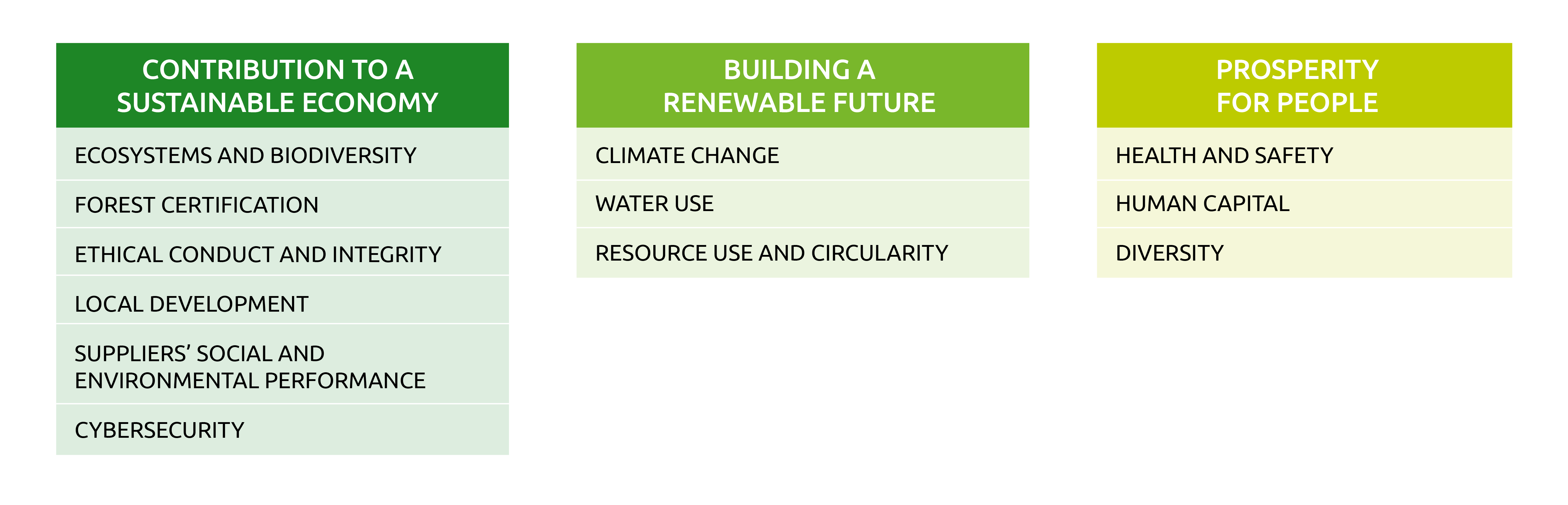 Material topic for external stakeholders Biodiversity, Forest Certification; Water; Climate Change Local Developmwnt